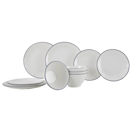 Geschirrset Linea Line 12-teilig, weiß, blau
