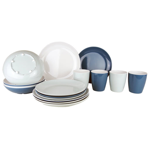 Geschirrset Solid Line 16-tlg., blau, weiß