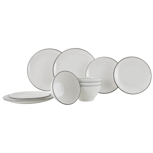 Geschirrset Linea Line 12-teilig, weiß, schwarz