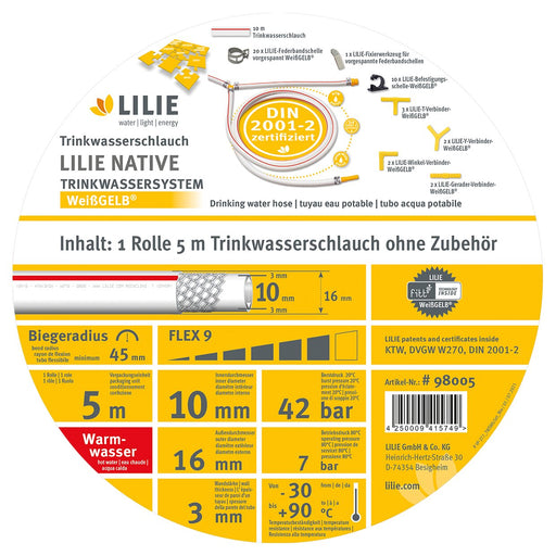 Trinkwasserschlauch WeißGelb warm 10x16 mm, Verkaufspackung 5 m Rolle