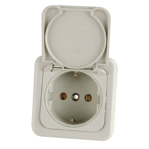 Schuko-Steckdose mit Deckel hellgrau, SB-verpackt