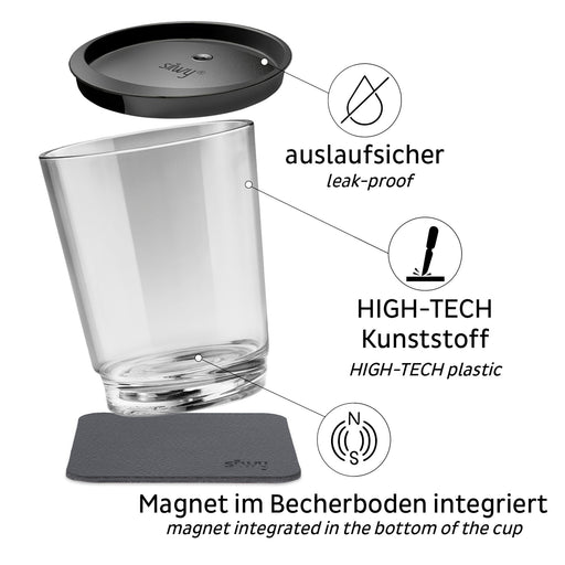 Magnet-Kunststoffgläser Whisky 250 ml, 2er-Set, rauchgrau