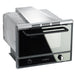 Kompakter Edelstahl Einbau-Gasbackofen mit Hitzeschutzglas und Panoramascheibe; ein emailliertes Backblech und ein Rost aus Edelstahl sind im Lieferumfang enthalten.