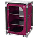 Die Campingschrank-Linie von DEFA zeichnet sich durch farbenfrohes Design und eine zeitgemäße Konstruktion aus. Ein vormontiertes Außengestänge, auf das ein hochwertiger Bezug aufgezogen wird, bildet das Gerüst für die wahlweise in den Farben lime, aqua oder pink gehaltenen Schränke. In dem rückseitigen Bezug ist eine Lüftungsgaze eingearbeitet. Die mit Aluminiumkante verstärkten Ablageböden werden einfach in die Regalträger eingelegt. Diese sind mit Reißverschlüssen versehen, so dass die Innenraumaufteilung individuell je nach Bedarf gestaltet werden kann. Die Füße sind höhenverstellbar und geben sicheren Stand. Den oberen Abschluss der stabilen Konstruktion bildet eine Ablageplatte, seitlich sind in 2 Reihen Utensilientaschen eingearbeitet. Eine praktische Trage- und Aufbewahrungstasche gehört zum Lieferumfang.