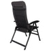 Bequemer Campingstuhl mit extrabreiter Sitzfläche und hoher Rückenlehne mit Kissen. Der verstärkte D-Rahmen aus Aluminium kann mit maximal 140 kg belastet werden. Der Stoff besteht aus gepolstertem Air-Mesh-Material und bietet Ihnen perfekten Sitzkomfort. Die Rückenlehne ist 6-fach verstellbar und hat eine verstellbare Kopfstütze. Eine Fußauflage ist optional erhältlich.
