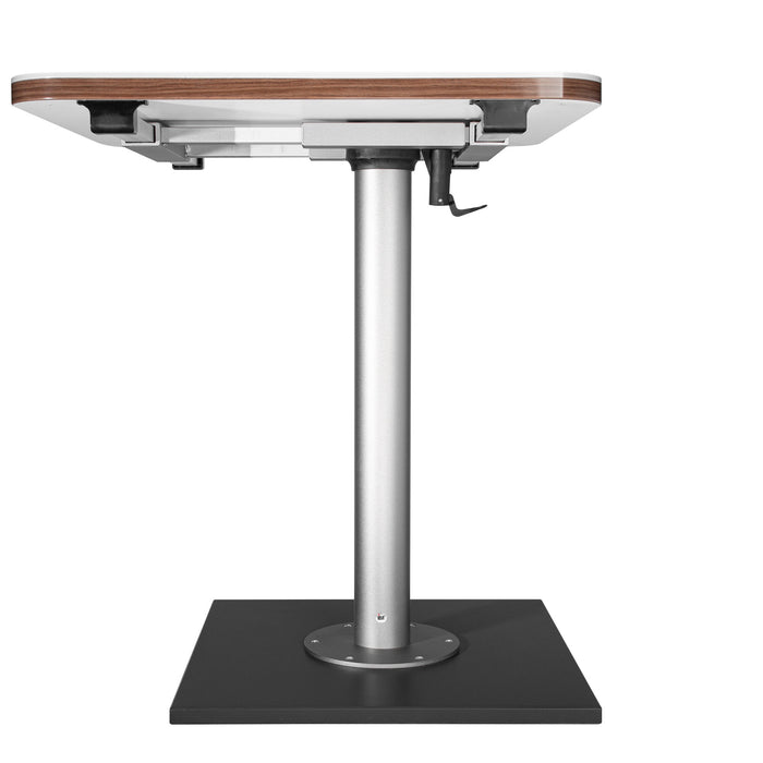 Feste Tischsäule mit X/Y-Verschiebung und 360°-Verdrehung. Höhe bis Unterkante Tischplatte 730 mm. Quer- und Längsverschiebung 18,5 und 33 cm. Tischplatte und Montageuntergrund sind nicht im Lieferumfang enthalten.