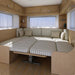 Leichte Ausführung mit hochgelegter Verbindungsstrebe für mehr Beinfreiheit (Vorteil bei schmalen Sitzgruppen), pulverbeschichtet. Höhe: min. 30, max. 65,5 cm. Belastbar: Tisch 40 kg, Bett 80 kg.