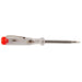 Prüf-Schraubendreher mit Metall-Clip 0,3 x 14,0 cm, made in Germany, geprüft nach VDE 0680 Teil 6, Heft glasklar, Klinge isoliert, mit Prüfknopf, 220 – 250 V, VDE.