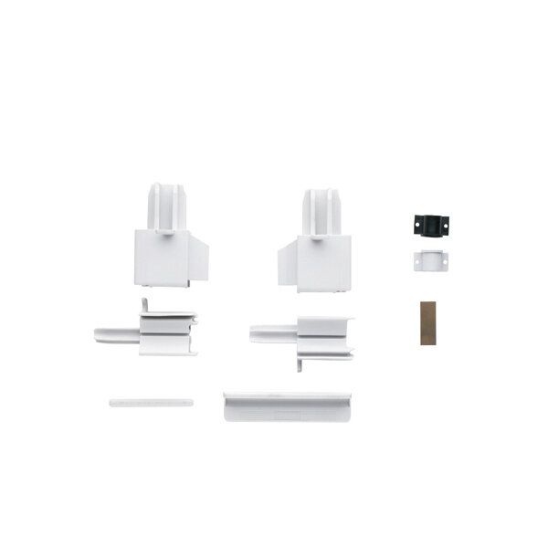 Lager für Aufnahme Federmotor, Lagerbuchse für Aufnahmewelle, Endstücke für Abschlussstab Fliegenschutz, Rollo, Blattfeder, Rastklinke, Klemmbolzen, Endstücke für Abschlussstab Verdunkelung.