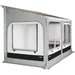 Abhängig von der Markisenlänge variiert das Design der Vorderwand ohne dabei Kompromisse bei Helligkeit und Komfort einzugehen. Es werden breite Frontteile und schmalere Zwischenstücke kombiniert. Die großen Panoramafenster können sowohl vertikal aufgerollt und als Tür verwendet als auch vollständig entfernt werden. Horizontal geöffnet lassen sie frische Luft herein.